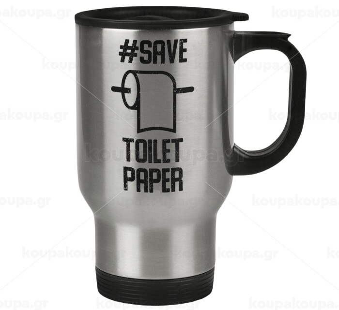 Save toilet Paper, Κούπα ταξιδιού ανοξείδωτη με καπάκι, διπλού τοιχώματος (θερμό) 450ml
