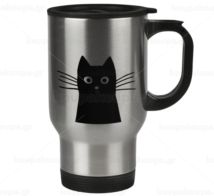 Μαύρη γάτα, Κούπα ταξιδιού ανοξείδωτη με καπάκι, διπλού τοιχώματος (θερμό) 450ml