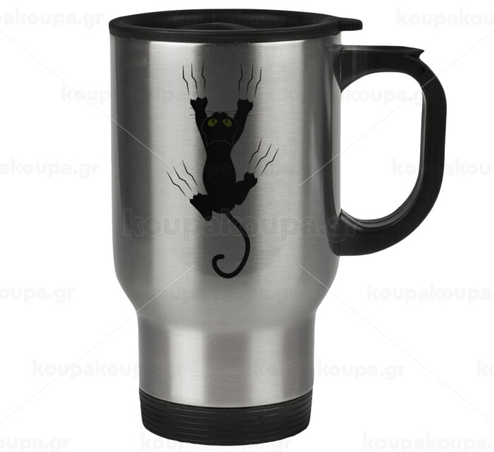 Γατούλα γρατζουνιά, Κούπα ταξιδιού ανοξείδωτη με καπάκι, διπλού τοιχώματος (θερμό) 450ml