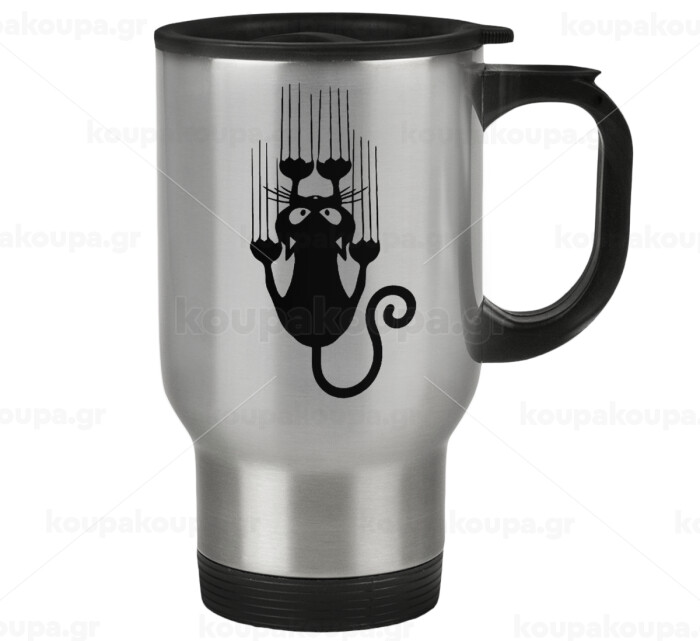 Cat scratching, Κούπα ταξιδιού ανοξείδωτη με καπάκι, διπλού τοιχώματος (θερμό) 450ml