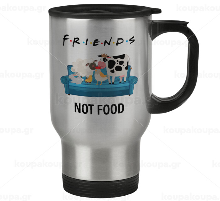 friends, not food, Κούπα ταξιδιού ανοξείδωτη με καπάκι, διπλού τοιχώματος (θερμό) 450ml