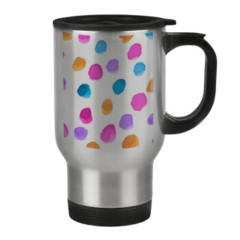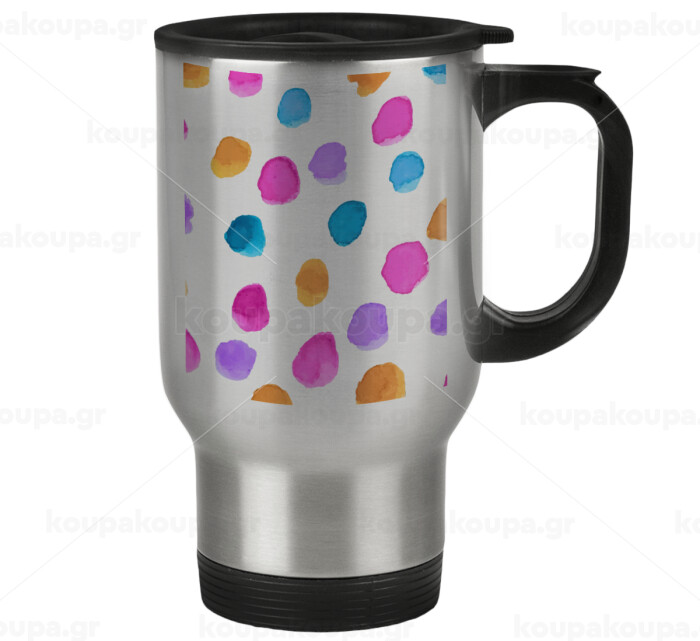Watercolor dots, Κούπα ταξιδιού ανοξείδωτη με καπάκι, διπλού τοιχώματος (θερμό) 450ml