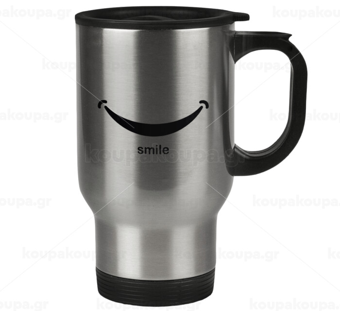 Smile!!!, Κούπα ταξιδιού ανοξείδωτη με καπάκι, διπλού τοιχώματος (θερμό) 450ml