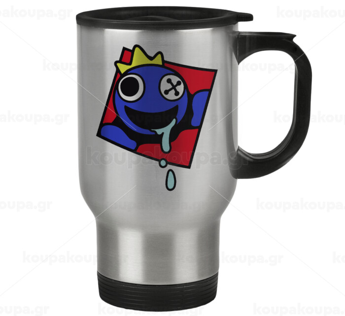 Blue, Rainbow friends, Κούπα ταξιδιού ανοξείδωτη με καπάκι, διπλού τοιχώματος (θερμό) 450ml