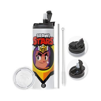 Brawl Stars Shelly, Κούπα ταξιδιού ανοξείδωτη με καπάκι, διπλού τοιχώματος (θερμό) 450ml