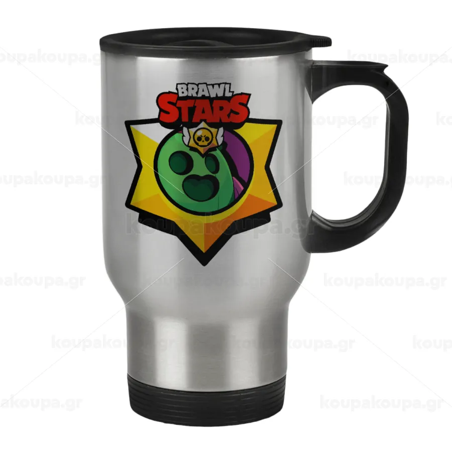 Brawl Stars Spike, Κούπα ταξιδιού ανοξείδωτη με καπάκι, διπλού τοιχώματος (θερμό) 450ml