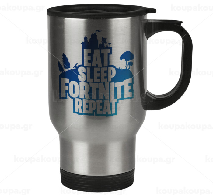 Eat Sleep Fortnite Repeat, Κούπα ταξιδιού ανοξείδωτη με καπάκι, διπλού τοιχώματος (θερμό) 450ml