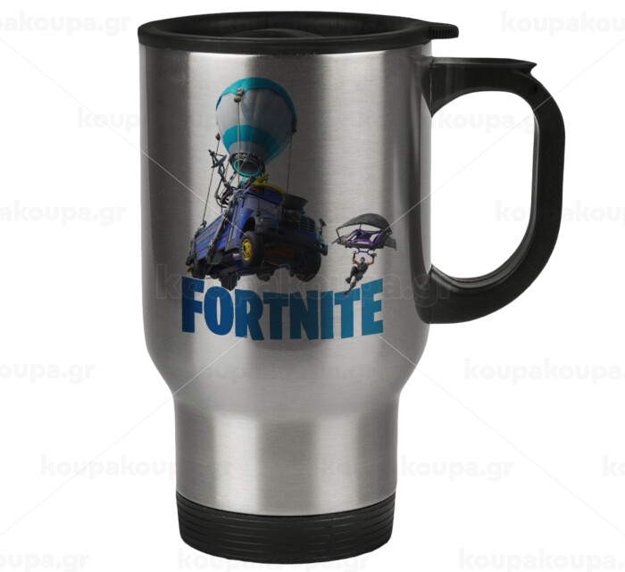 Fortnite Bus, Κούπα ταξιδιού ανοξείδωτη με καπάκι, διπλού τοιχώματος (θερμό) 450ml