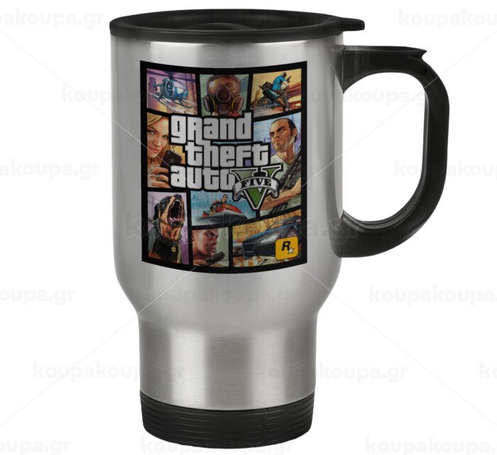 GTA V, Κούπα ταξιδιού ανοξείδωτη με καπάκι, διπλού τοιχώματος (θερμό) 450ml