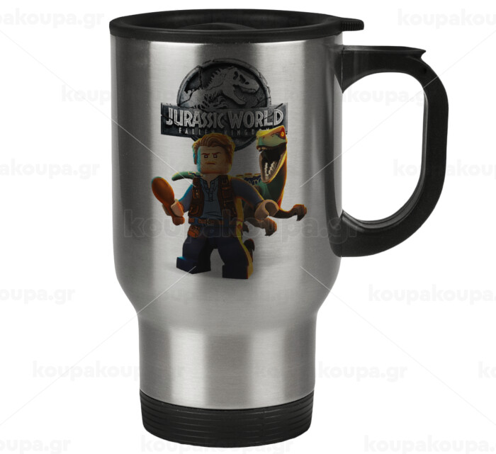 Jurassic world, Κούπα ταξιδιού ανοξείδωτη με καπάκι, διπλού τοιχώματος (θερμό) 450ml