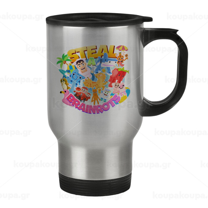 Roblox Steal a Brainrot, Κούπα ταξιδιού ανοξείδωτη με καπάκι, διπλού τοιχώματος (θερμό) 450ml
