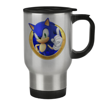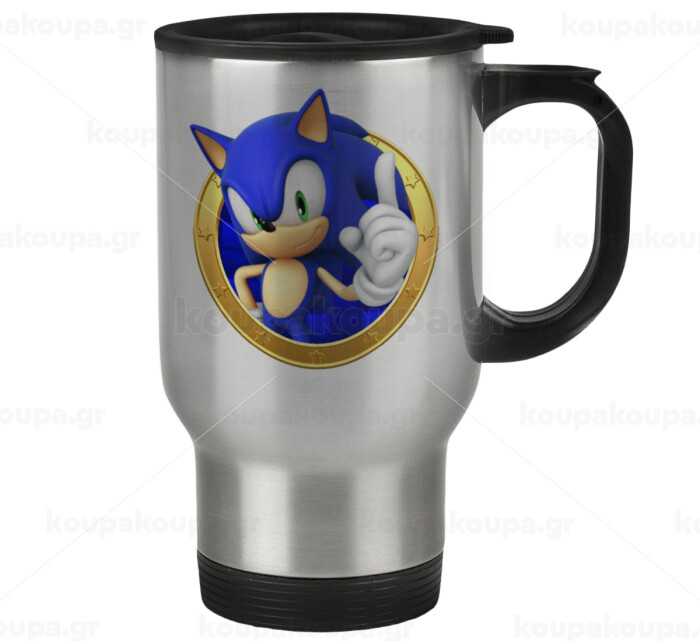 Sonic the hedgehog, Κούπα ταξιδιού ανοξείδωτη με καπάκι, διπλού τοιχώματος (θερμό) 450ml