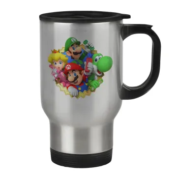 Super mario and Friends, Κούπα ταξιδιού ανοξείδωτη με καπάκι, διπλού τοιχώματος (θερμό) 450ml