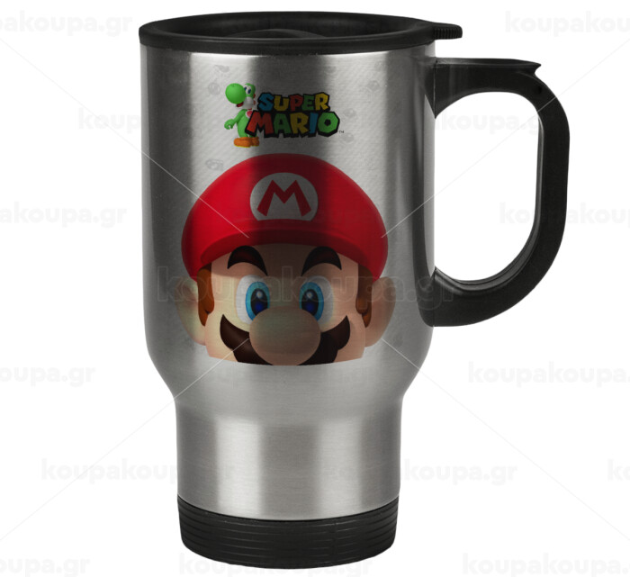 Super mario, Κούπα ταξιδιού ανοξείδωτη με καπάκι, διπλού τοιχώματος (θερμό) 450ml