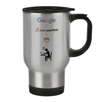 Google + Stack overflow + Coffee, Κούπα ταξιδιού ανοξείδωτη με καπάκι, διπλού τοιχώματος (θερμό) 450ml