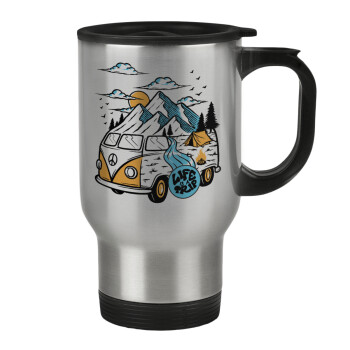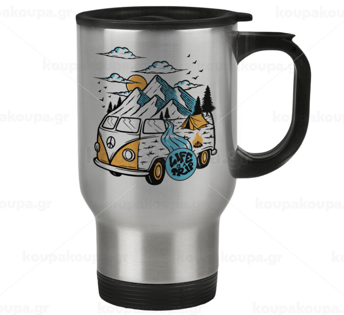 Life is a trip, Κούπα ταξιδιού ανοξείδωτη με καπάκι, διπλού τοιχώματος (θερμό) 450ml