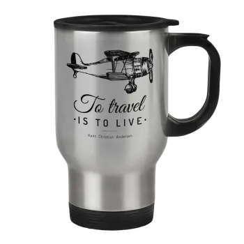 To travel is to live, Κούπα ταξιδιού ανοξείδωτη με καπάκι, διπλού τοιχώματος (θερμό) 450ml