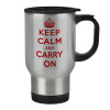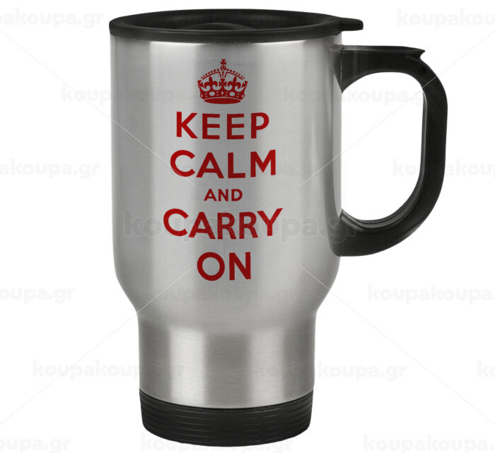 KEEP CALM  and carry on, Κούπα ταξιδιού ανοξείδωτη με καπάκι, διπλού τοιχώματος (θερμό) 450ml