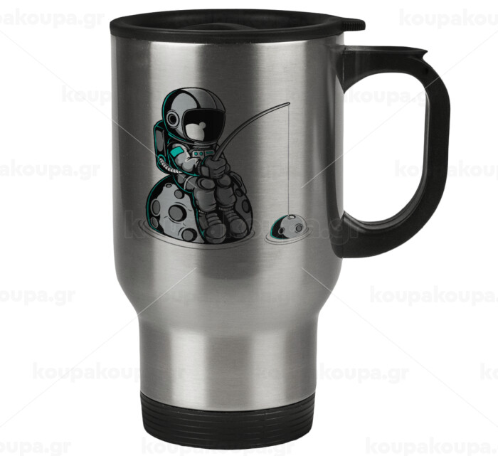 Αστροναύτης ψαρεύει στο διάστημα, Κούπα ταξιδιού ανοξείδωτη με καπάκι, διπλού τοιχώματος (θερμό) 450ml