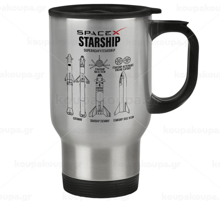 Space X, Κούπα ταξιδιού ανοξείδωτη με καπάκι, διπλού τοιχώματος (θερμό) 450ml