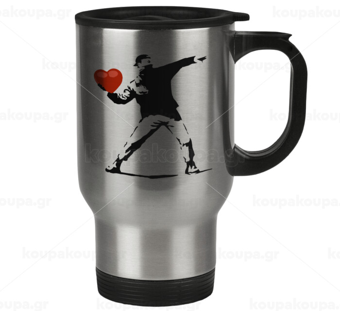 Banksy (The heart thrower), Κούπα ταξιδιού ανοξείδωτη με καπάκι, διπλού τοιχώματος (θερμό) 450ml