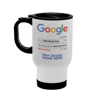 Κούπα ταξιδιού ανοξείδωτη με καπάκι, διπλού τοιχώματος (θερμό) λευκή 450ml με θέμα Ιατροί / Φαρμακεία / Υγεία