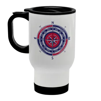 Ανεμολόγιο χάρτης πυξίδα ναυτικού, Κούπα ταξιδιού ανοξείδωτη με καπάκι, διπλού τοιχώματος (θερμό) λευκή 450ml