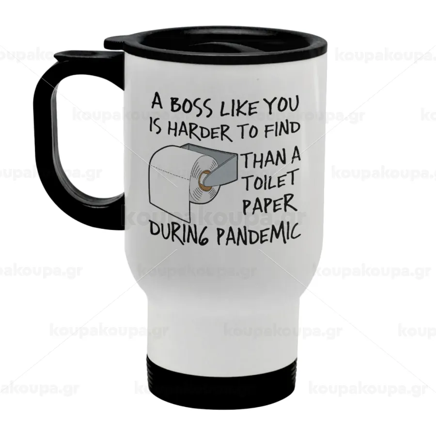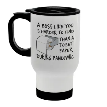 A boss like you is harder to find, than a toilet paper during pandemic, Κούπα ταξιδιού ανοξείδωτη με καπάκι, διπλού τοιχώματος (θερμό) λευκή 450ml