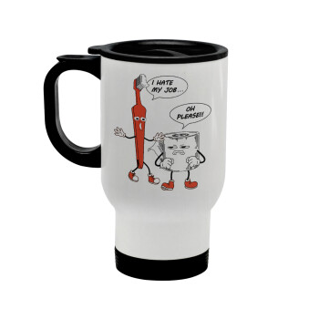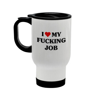 I LOVE MY BOSS, Κούπα ταξιδιού ανοξείδωτη με καπάκι, διπλού τοιχώματος (θερμό) λευκή 450ml