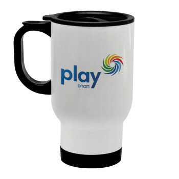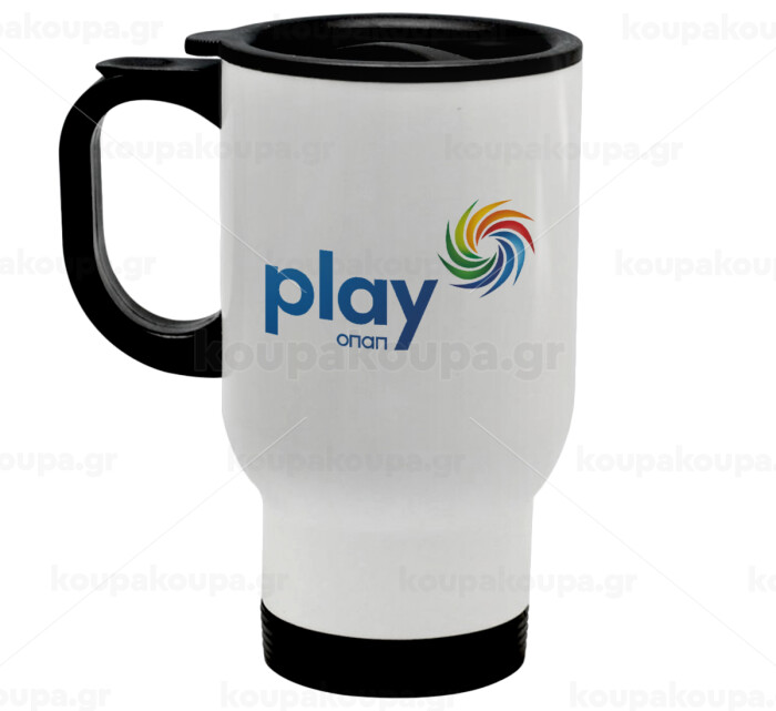 Play by ΟΠΑΠ, Κούπα ταξιδιού ανοξείδωτη με καπάκι, διπλού τοιχώματος (θερμό) λευκή 450ml