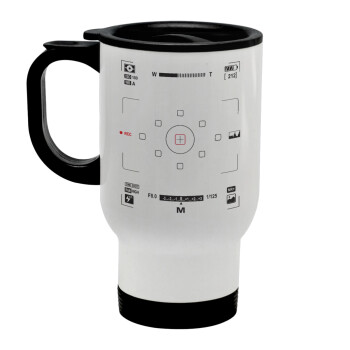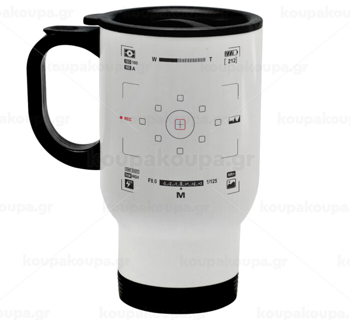 Camera viewfinder, Κούπα ταξιδιού ανοξείδωτη με καπάκι, διπλού τοιχώματος (θερμό) λευκή 450ml