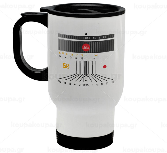 Leica Lens, Κούπα ταξιδιού ανοξείδωτη με καπάκι, διπλού τοιχώματος (θερμό) λευκή 450ml