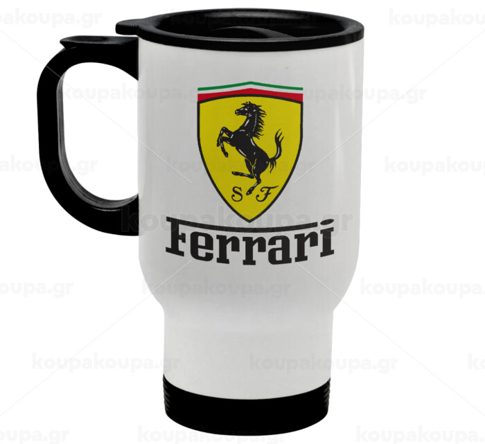 Ferrari S.p.A., Κούπα ταξιδιού ανοξείδωτη με καπάκι, διπλού τοιχώματος (θερμό) λευκή 450ml