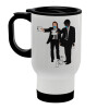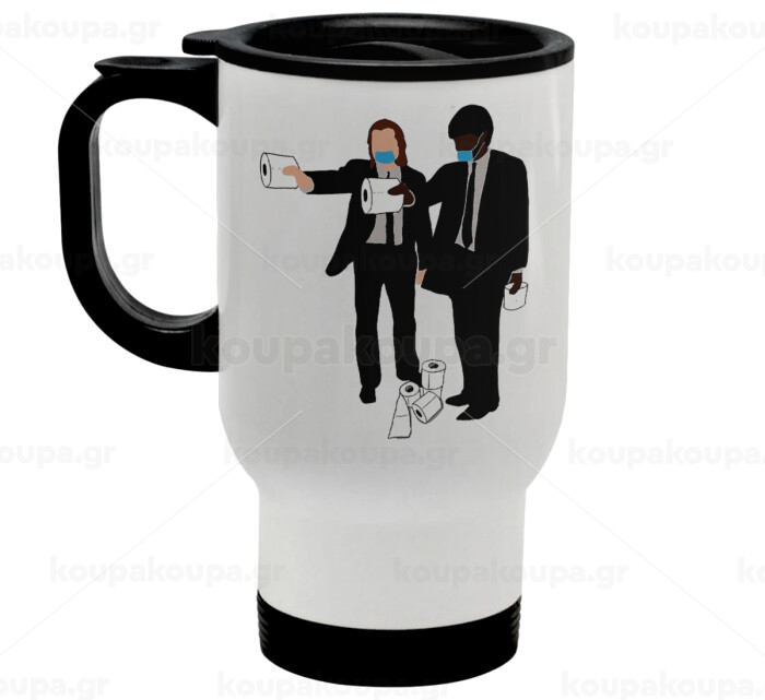 Pulp Fiction 3 meter away, Κούπα ταξιδιού ανοξείδωτη με καπάκι, διπλού τοιχώματος (θερμό) λευκή 450ml