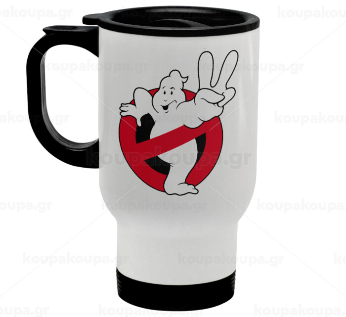 Ghostbusters, Κούπα ταξιδιού ανοξείδωτη με καπάκι, διπλού τοιχώματος (θερμό) λευκή 450ml