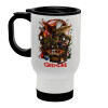 Gremlins, Κούπα ταξιδιού ανοξείδωτη με καπάκι, διπλού τοιχώματος (θερμό) λευκή 450ml