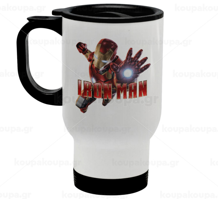 Ironman, Κούπα ταξιδιού ανοξείδωτη με καπάκι, διπλού τοιχώματος (θερμό) λευκή 450ml