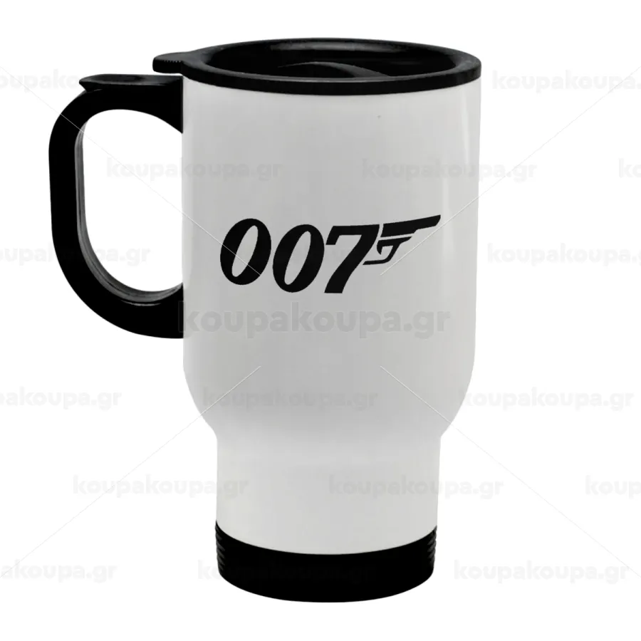 James Bond 007, Κούπα ταξιδιού ανοξείδωτη με καπάκι, διπλού τοιχώματος (θερμό) λευκή 450ml