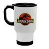 Jurassic park, Κούπα ταξιδιού ανοξείδωτη με καπάκι, διπλού τοιχώματος (θερμό) λευκή 450ml