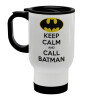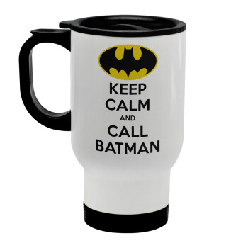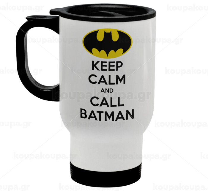 KEEP CALM & Call BATMAN, Κούπα ταξιδιού ανοξείδωτη με καπάκι, διπλού τοιχώματος (θερμό) λευκή 450ml