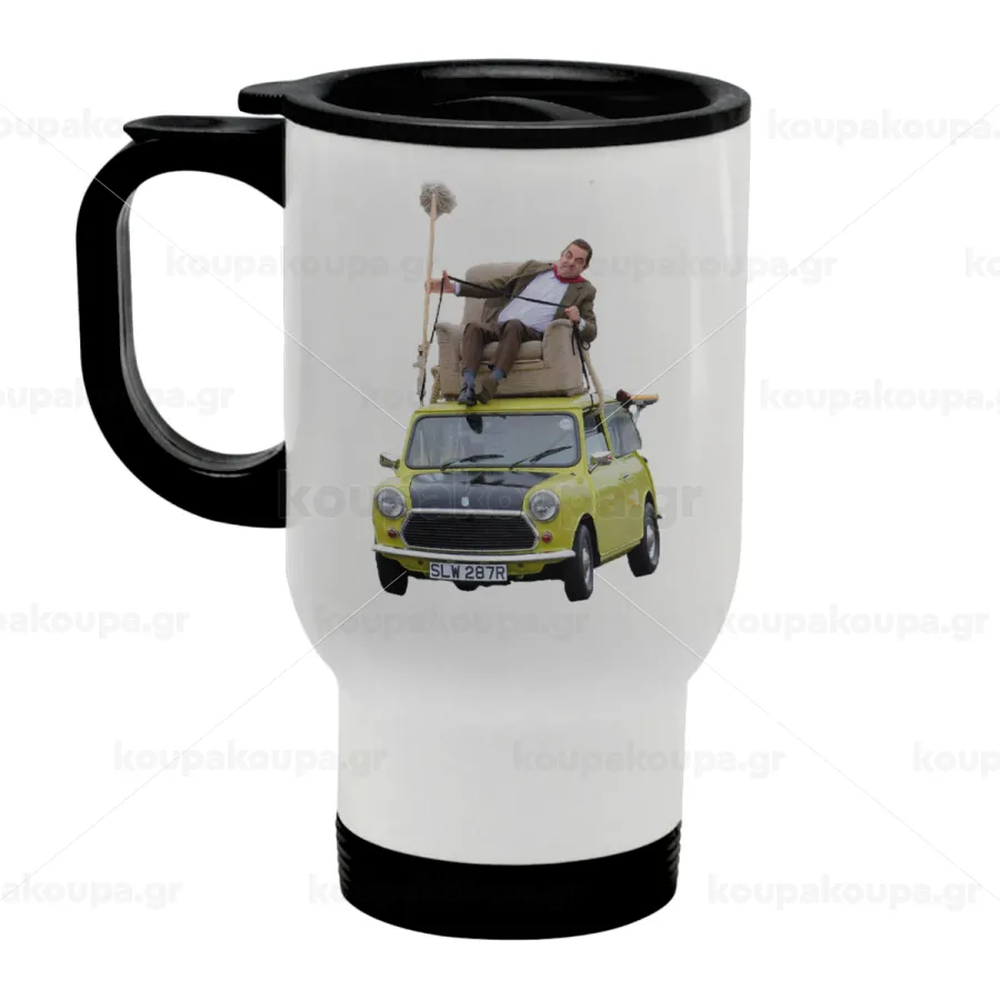 Mr. Bean mini 1000, Κούπα ταξιδιού ανοξείδωτη με καπάκι, διπλού τοιχώματος (θερμό) λευκή 450ml