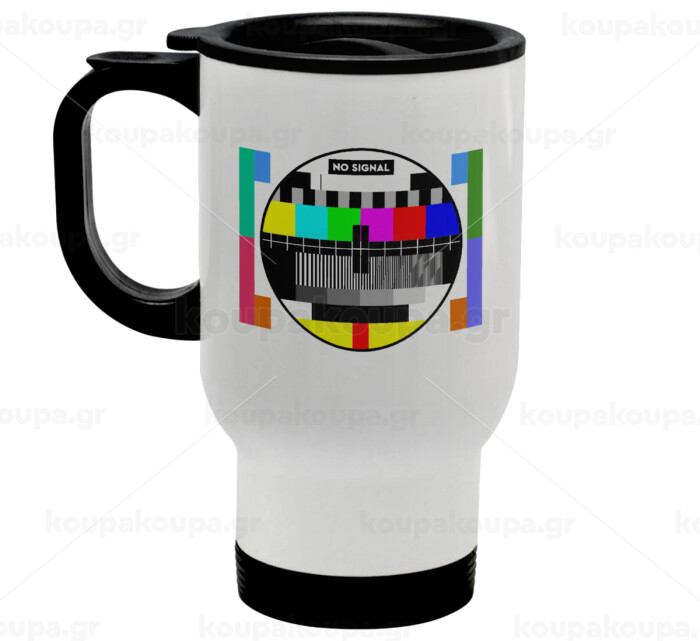 No signal, Κούπα ταξιδιού ανοξείδωτη με καπάκι, διπλού τοιχώματος (θερμό) λευκή 450ml
