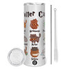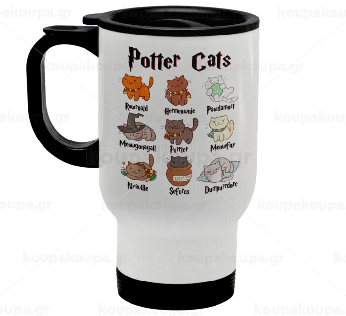 Potter Cats, Κούπα ταξιδιού ανοξείδωτη με καπάκι, διπλού τοιχώματος (θερμό) λευκή 450ml