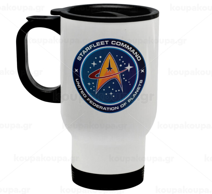 Starfleet command, Κούπα ταξιδιού ανοξείδωτη με καπάκι, διπλού τοιχώματος (θερμό) λευκή 450ml