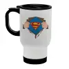 Superman hands, Κούπα ταξιδιού ανοξείδωτη με καπάκι, διπλού τοιχώματος (θερμό) λευκή 450ml