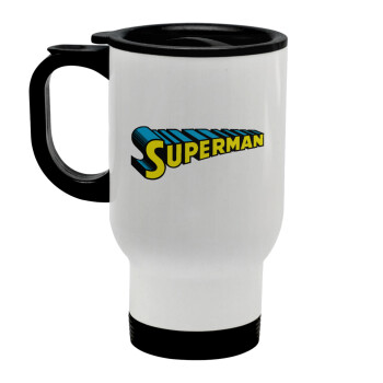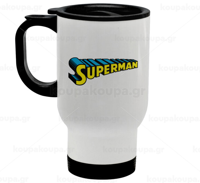 Superman vintage, Κούπα ταξιδιού ανοξείδωτη με καπάκι, διπλού τοιχώματος (θερμό) λευκή 450ml
