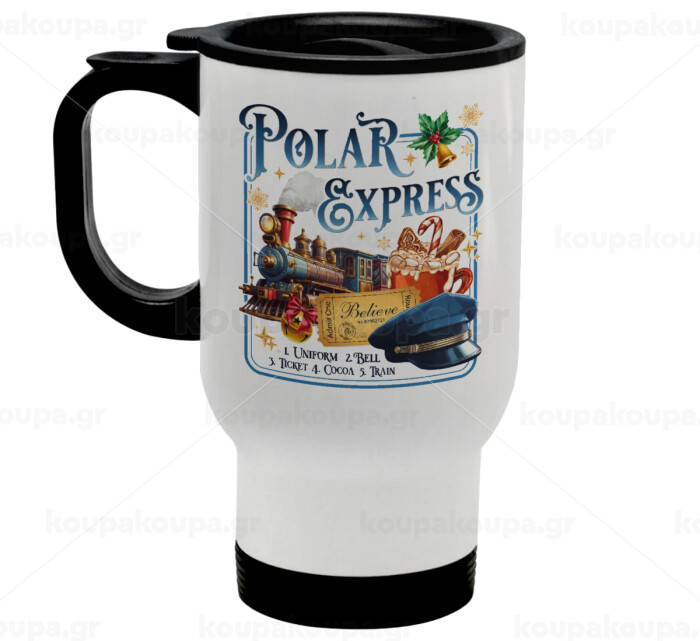 The Polar Express, Κούπα ταξιδιού ανοξείδωτη με καπάκι, διπλού τοιχώματος (θερμό) λευκή 450ml