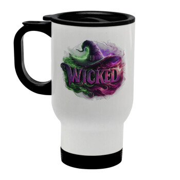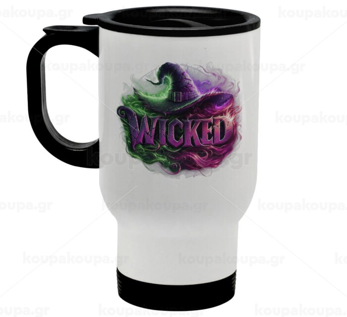 Wicked, Κούπα ταξιδιού ανοξείδωτη με καπάκι, διπλού τοιχώματος (θερμό) λευκή 450ml
