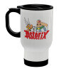 Asterix and Obelix, Κούπα ταξιδιού ανοξείδωτη με καπάκι, διπλού τοιχώματος (θερμό) λευκή 450ml