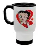 Betty Boop, Κούπα ταξιδιού ανοξείδωτη με καπάκι, διπλού τοιχώματος (θερμό) λευκή 450ml